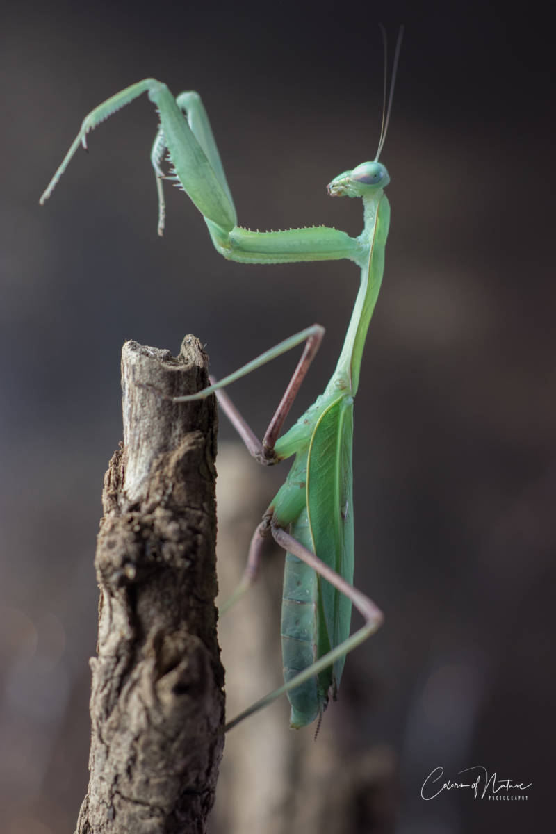 Bidsprinkhaan in verdedigings houding.