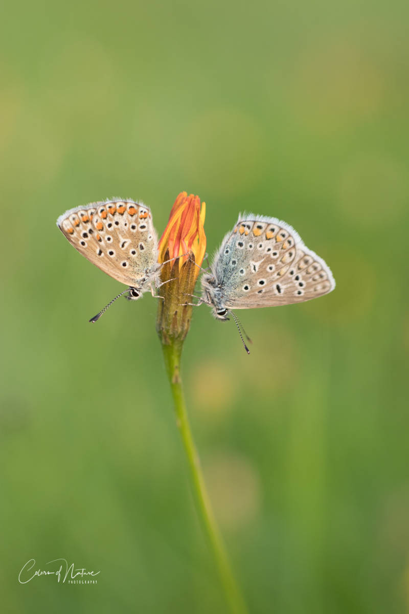 Icarus blauwtje links en rechts een Muntvlindertje