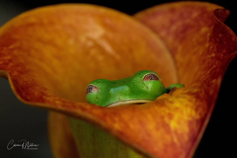 Sleepy head… roodoogmaki kikker een huisdier van iemand welke zeer zorgvuldig word behandeld tijdens het fotograferen, wat slechts 1 minuut duurt .